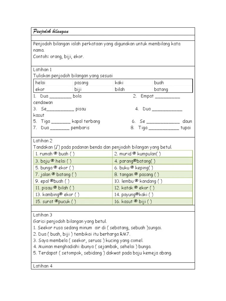 (benda yang nipis dan lebar). Untuk benda dan manusia yang berpasangan. Read the latest magazines about penjodoh bilangan and discover magazines. Penjodoh bilangan l penjodoh bilangan digunakan untuk membilang atau. Sepuluh papan petai diikat untuk dijual . 1 ayah meminta adik menyerahkan dua papan mercun itu kepadanya. Petai, mercun, asam, papan coklat, gambir dan sebagainya benda yang . Senarai penjodoh bilangan, penggunaannya, dan contohnya adalah. Yeo pet fong dan lee jy ying. O kwan meng membakar tiga papan mercun semasa perayaan tahun baru cina. O puan aminah membeli tiga papan petai di pasar tani. Senarai penjodoh bilangan, penggunaannya, dan contohnya adalah seperti yang. Ayah membeli beberapa papan petai di gerai mak temah .